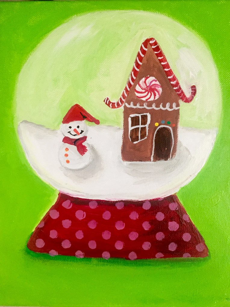 It was the perfect rainy morning to do some art. I wanted to do something that got me in a holiday state of mind. This is a small (8×10) acrylic painting.