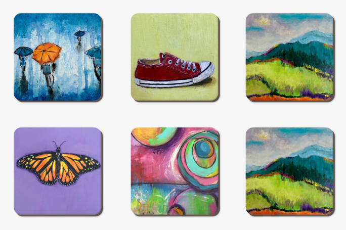 new coasters February 28, 2020 | amygreenberg925 New coasters are now available. These are made from my artwork. I will have them at tomorrow’s open studio. They make great gifts! A unique holding spot for your favorite beverage! Share this: Click to share on X (Opens in new window) X Click to share on Facebook (Opens in new window) Facebook Like Loading...