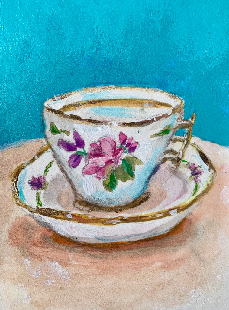 Tea Time June 1, 2020 | amygreenberg925 I did another small painting on paper – this is one of the fancy tea cups we got from our Aunt Betty. I can imagine the tea and conversation that probably accompanied that tea! Share this: Click to share on X (Opens in new window) X Click to share on Facebook (Opens in new window) Facebook Like Loading...